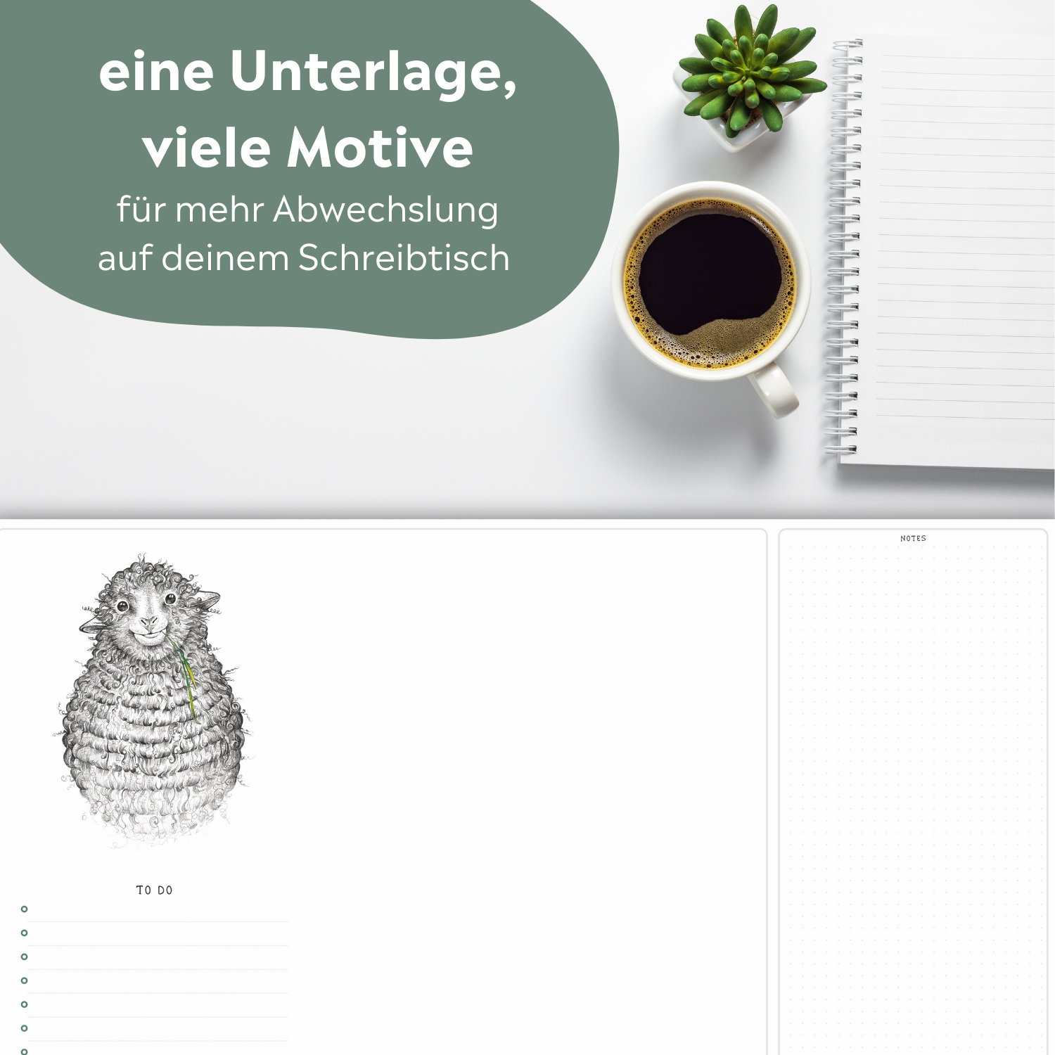 Unsere tierischen Schreibtischunterlagen aus Papier sind das perfekte Accessoire für deinen Schreibtisch. Ob im Büro oder zu Hause, auf der Arbeit oder fürs Studium: Hier finden deine Notizen und To-Do-Listen ausreichend Platz. Und die einzigartigen Designs unserer Künstlerin Hanna Ligeti machen jeden Tag aufs Neue gute Laune.