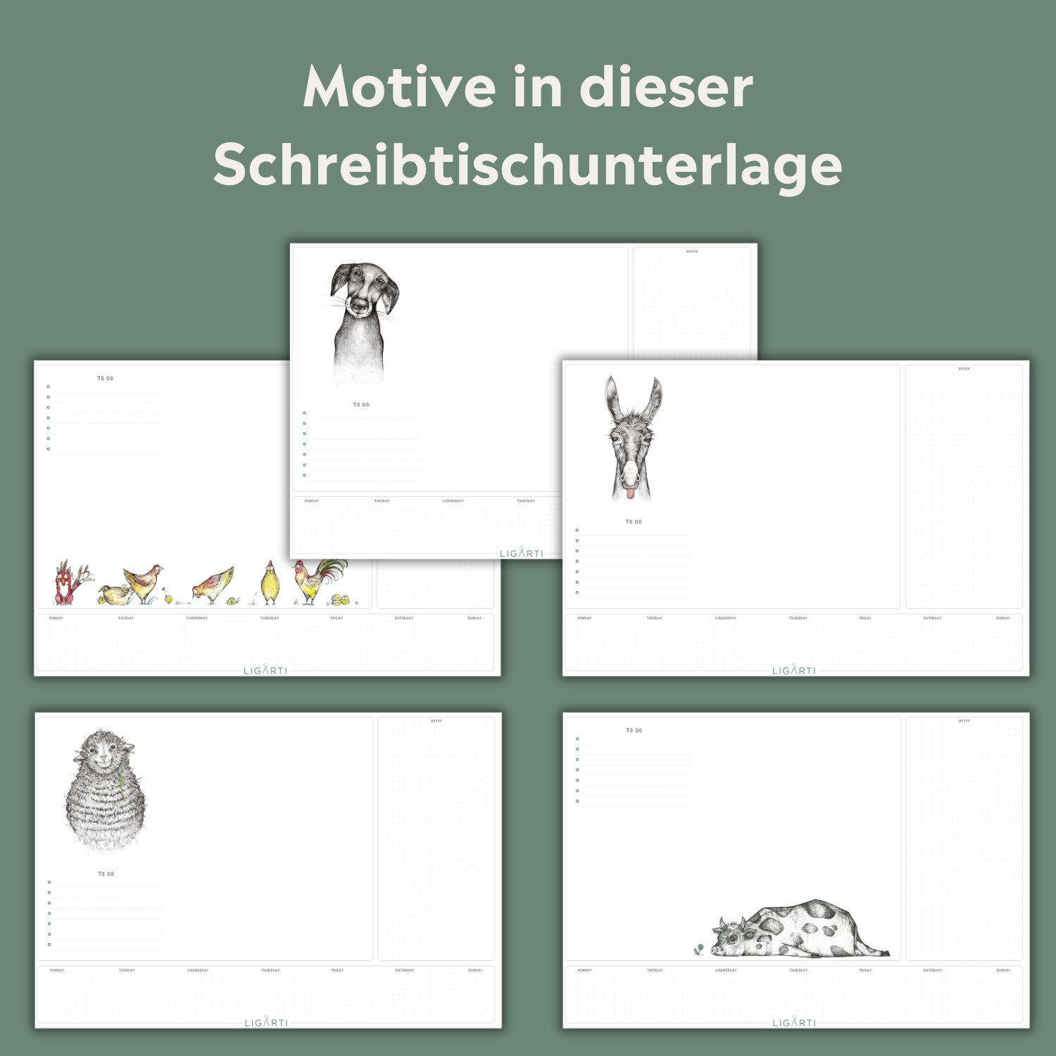 Achtung, hier kommt 'n Plan für deinen Tisch – Schreibtischunterlagen mit süßen Bauernhof-Tieren
