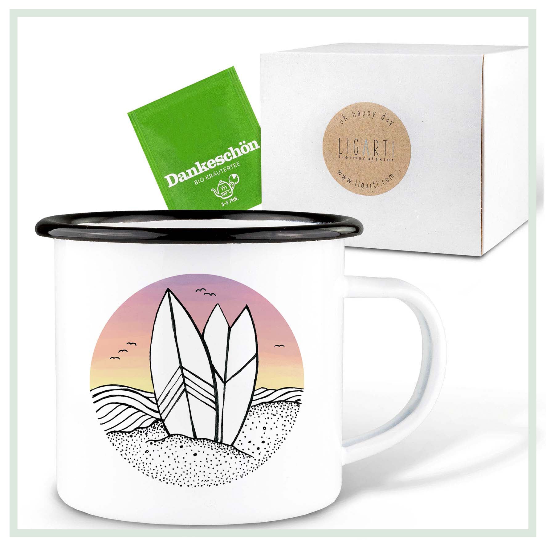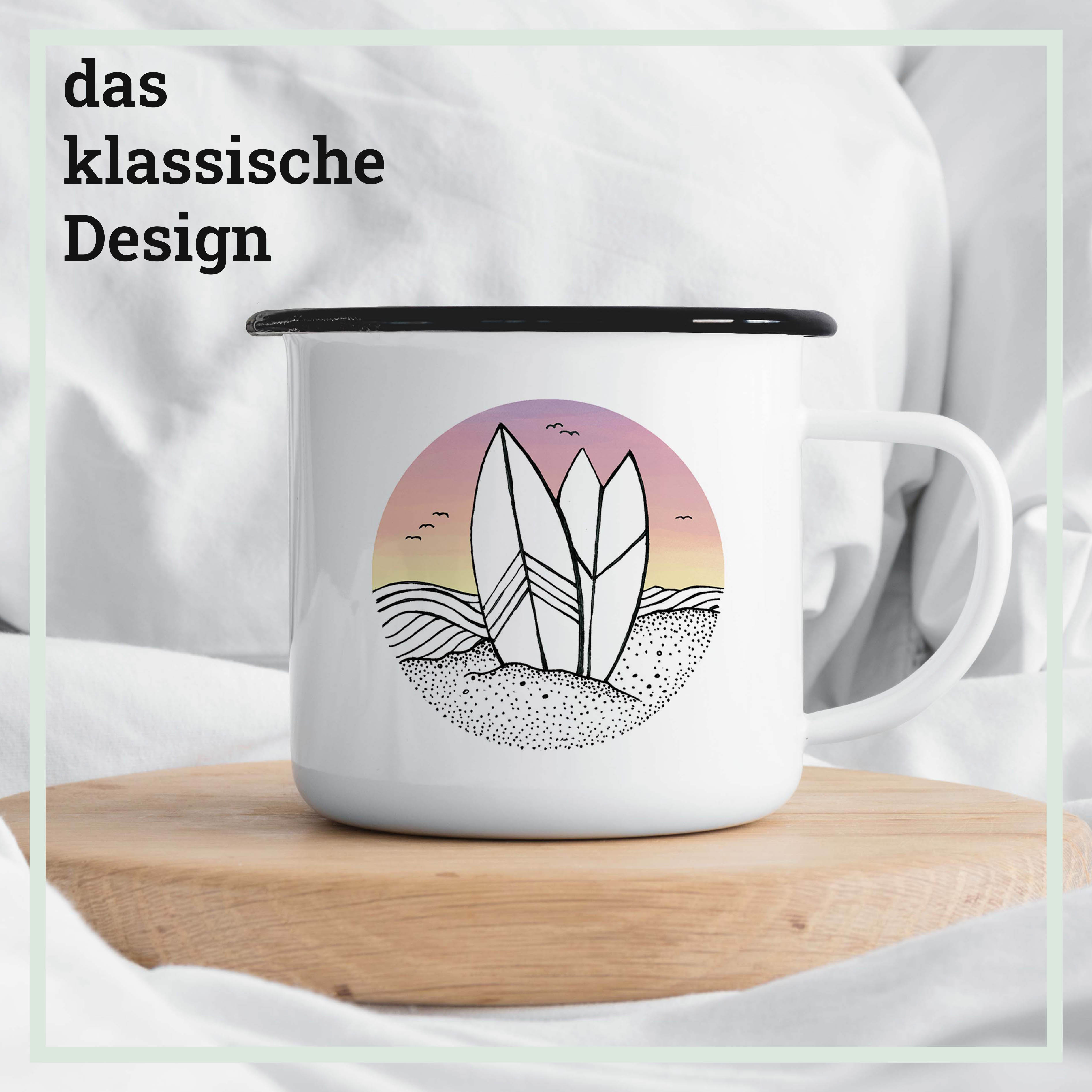 Emaille Tasse – Surfing Day and Night