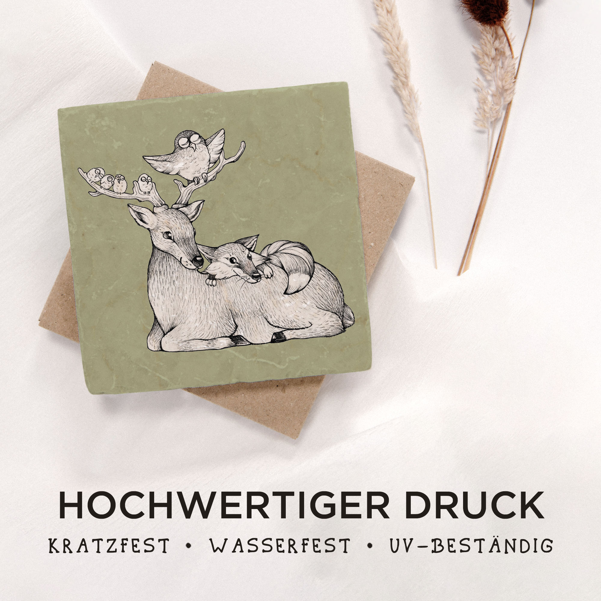 Fliesenuntersetzer – Reh am Lagerfeuer