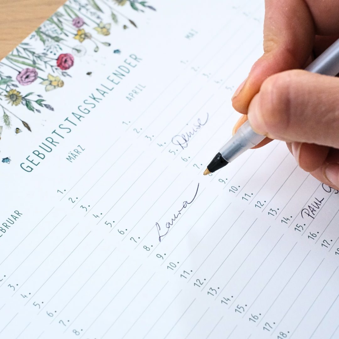 • Ewiger Geburtstagskalender ohne Wochentage, jedes Jahr wiederverwendbar