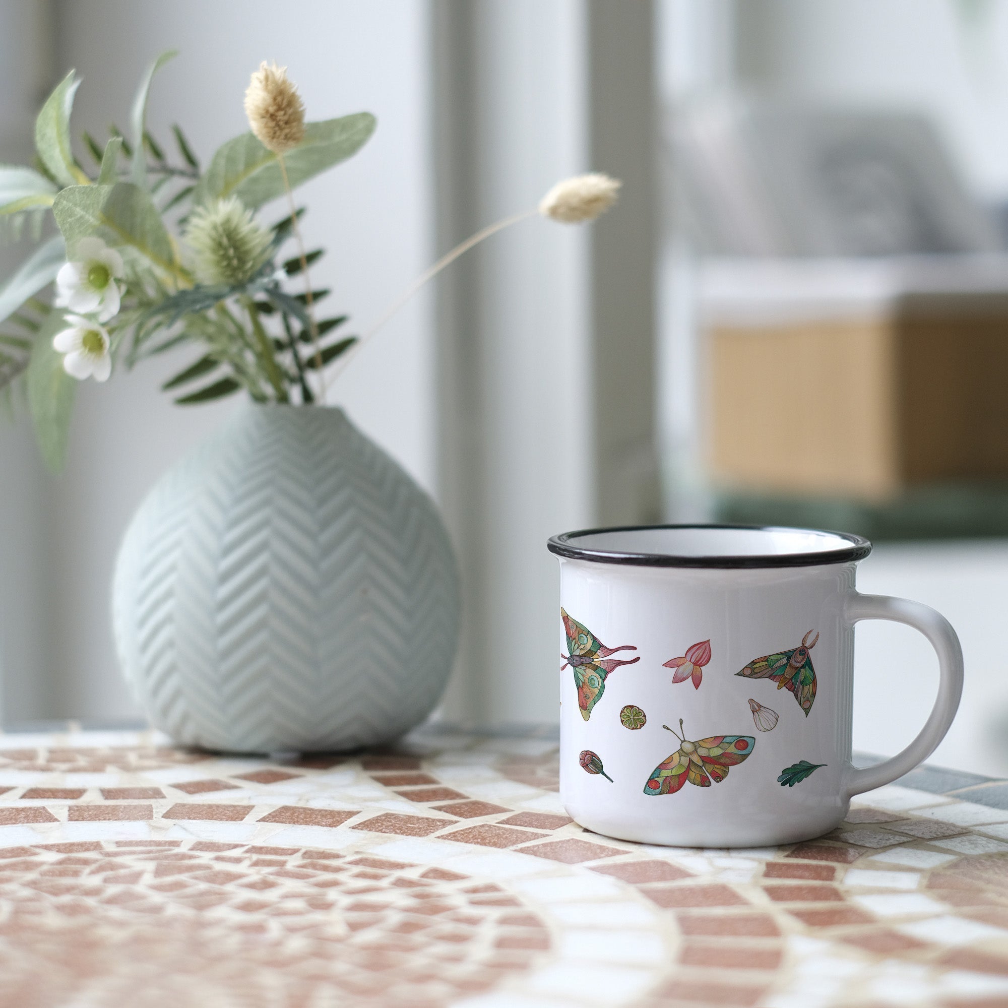 Keramiktasse – Bunte Motten
