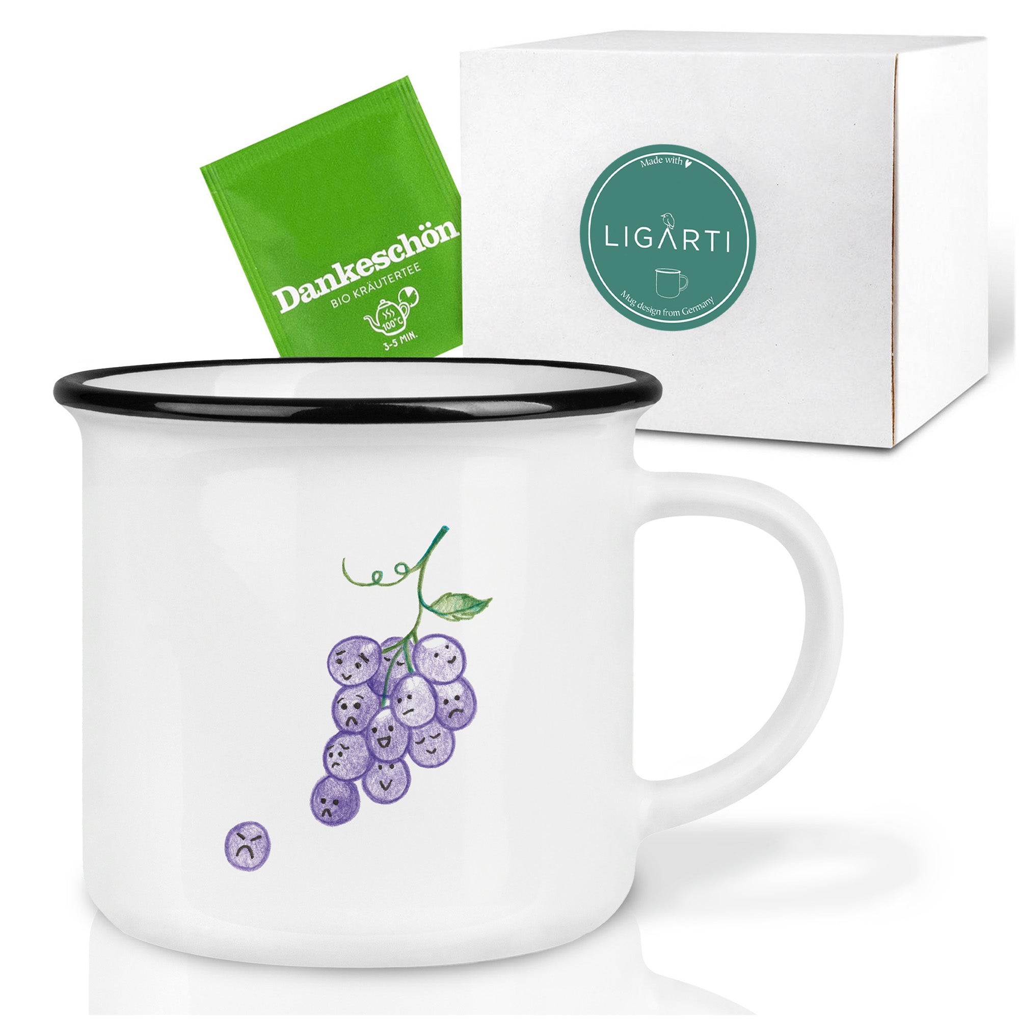 Unsere schöne Weintrauben-Tasse ist das ideale Geschenk für deine beste Freundin, deine Mama, deinen Kollegen – oder einfach für dich selbst. Ob fürs Büro oder für zu Hause: Die einzigartigen Designs unserer Künstlerin Hanna Ligeti machen diesen Keramikbecher zu deiner neuen Lieblingstasse.