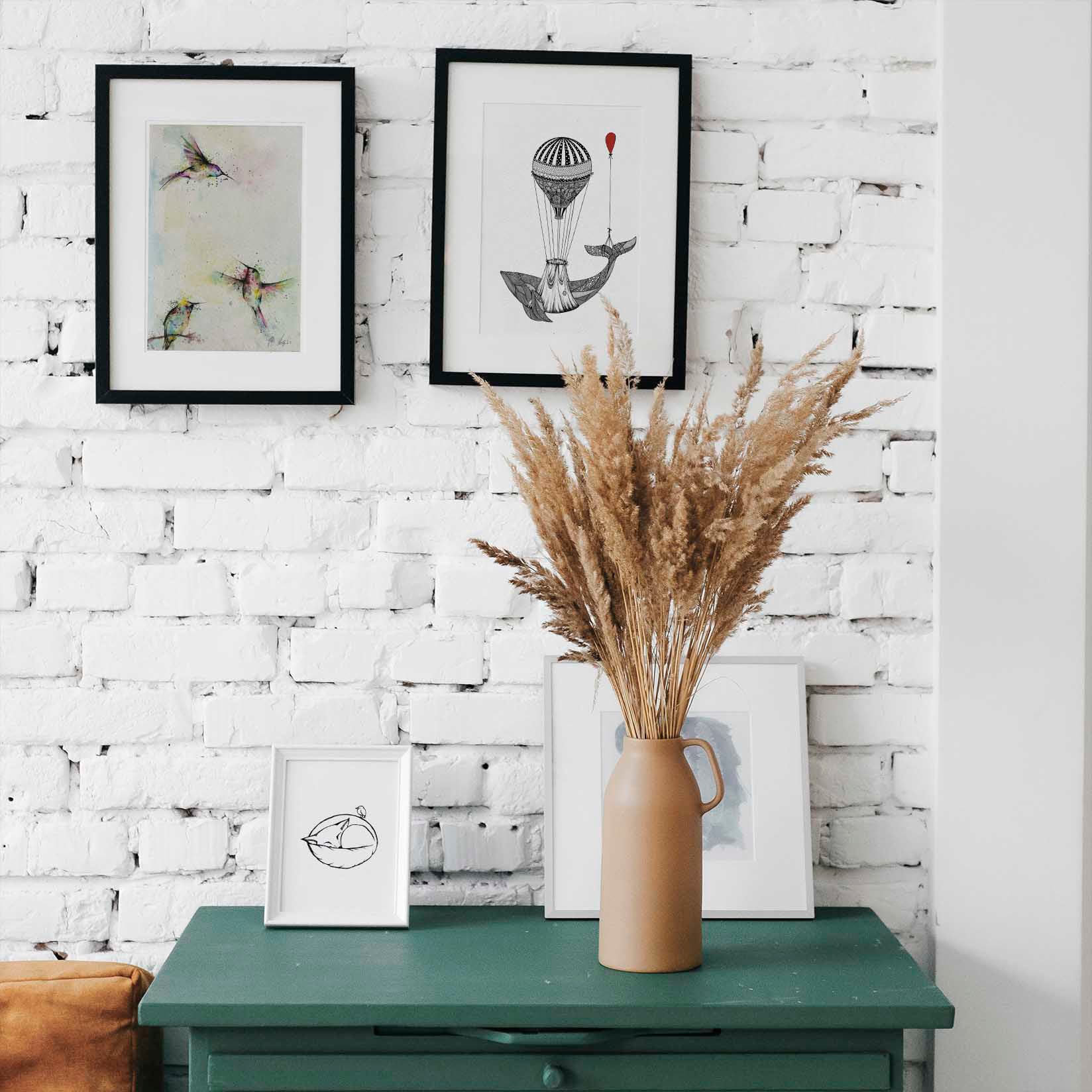 Kunstdrucke sind zum Einrahmen oder direkt für die Wand als Deko Element gedacht. Vermeide den direkten Kontakt mit Wasser oder feuchten Gegenständen, um Schäden am Papier zu verhindern.