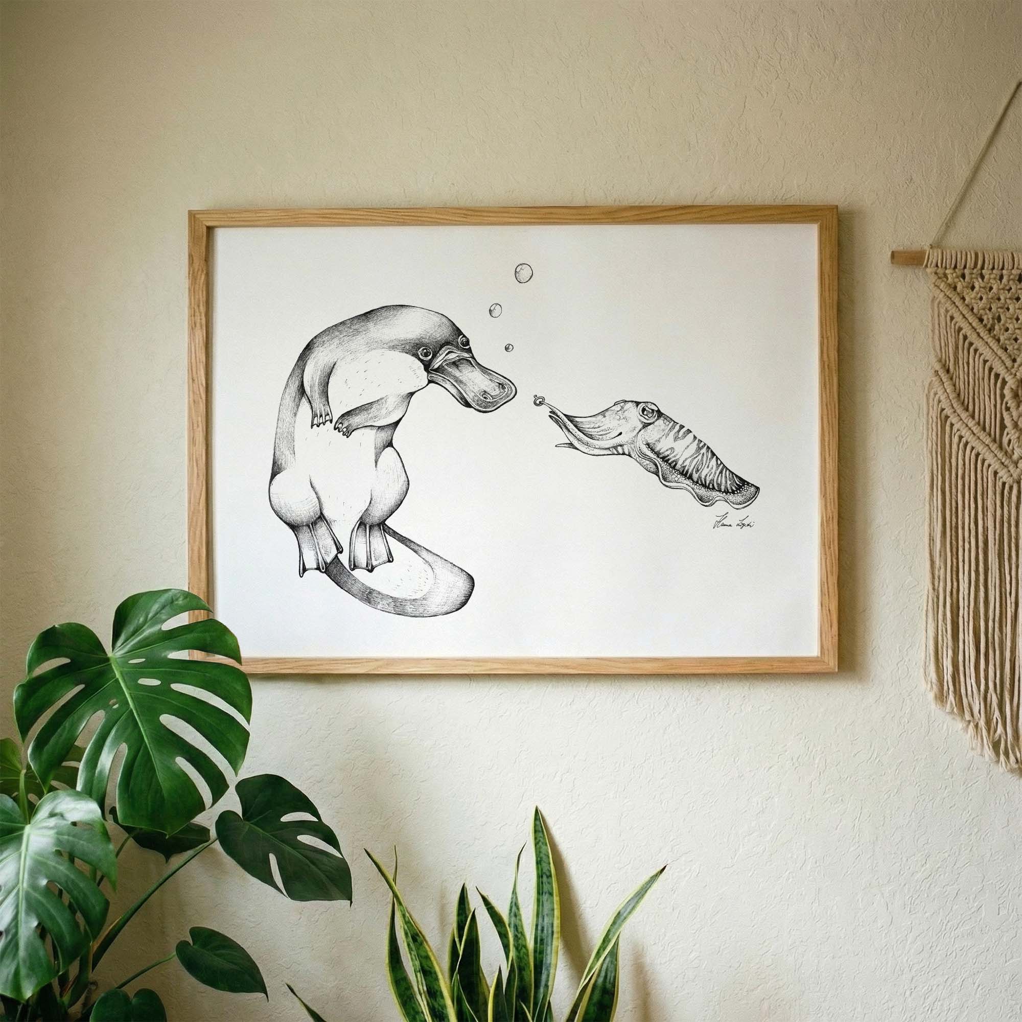 Kunstdruck - Schnabeltier & Sepia