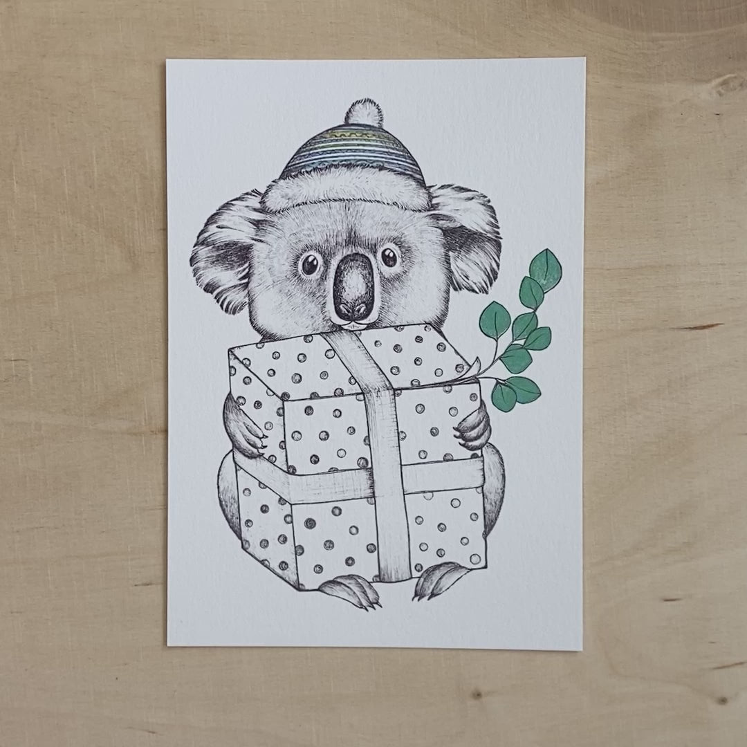 Postkarte Bambus Koala mit Geschenk