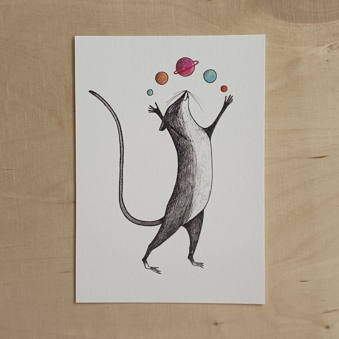 Postkarte Bambus Ratte mit Planeten