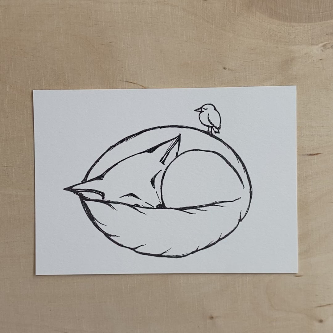 Postkarte – Schlafender Fuchs